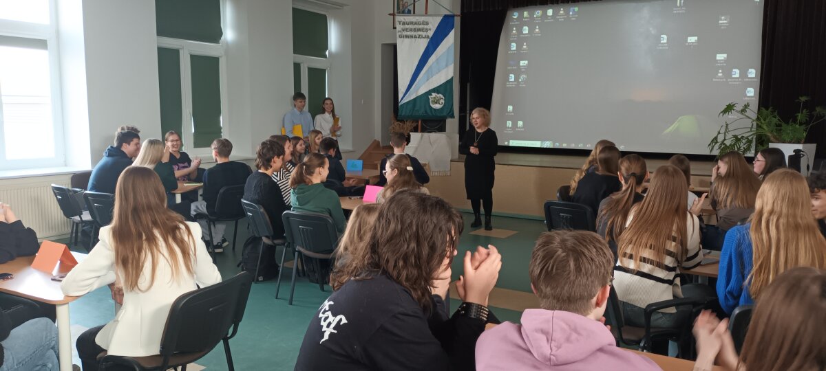 Kovo 5 dieną mokykloje I-II klasių mokinių komandos dalyvavo lietuvių kalbos viktorinoje ,,Maža garbė svetimom kalbom kalbėti, didi gėda savos gerai nemokėti“. Viktorina skirta Lietuvių kalbos dienoms paminėti. Jos metu sužinojome įdomių faktų apie lietuvių kalbą. Kahoot platformoje klasių komandos atsakinėjo į klausimus apie žodžių rašybą, lietuvių kalbos vartojimą ir lietuvių kalbos istoriją. Prizines vietas laimėjo II s, II f ir II r klasės. Laimėtojų komandos buvo apdovanotos prizais su mokyklos atributika. Visi dalyviai pasitikrino žinias apie gimtąją kalbą, sužinojo naujų faktų apie labai gražią ir sudėtingą lietuvių kalbą.