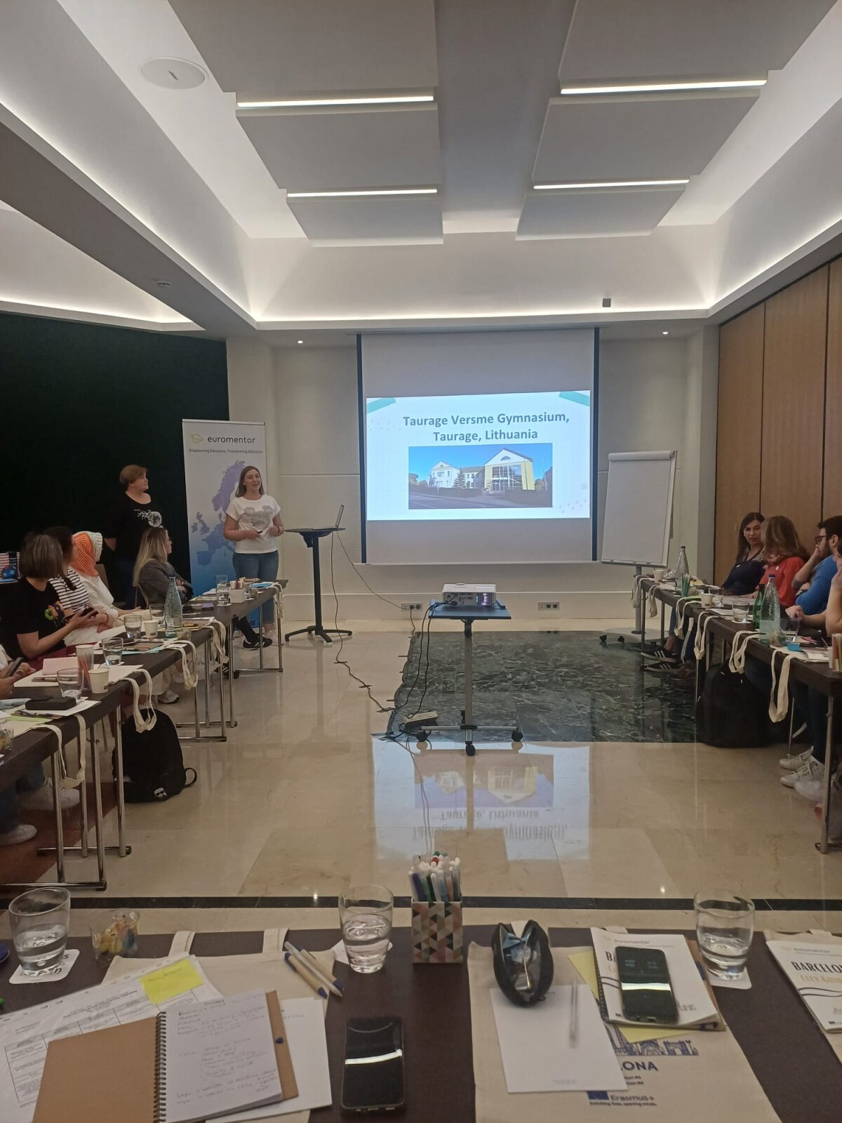 Balandžio 8-12 dienomis matematikos mokytoja Danguolė Galkauskienė ir psichologė Aušra Valionienė dalyvavo Erasmus + KA1 kursuose „Komandos formavimas mokyklose: efektyvaus mokinių bendradarbiavimo klasėje strategijos“ (angl. „Team Building in Schools: Strategies for Effective Student Collaboration in the Classroom“), kurie vyko Barselonoje, Ispanijoje. Penkias dienas trukusiuose mokymuose išbandėme daugybę komandos formavimo veiklų ir pratimų, sužinojome, kokios yra grupių formavimo(si) stadijos. Kursuose buvo akcentuota pozityvaus bendravimo nauda – praktiškai įsitikinome, kad toks pat sakinys, pasakytas švelnesniais žodžiais, atveria didesnes galimybes susikalbėjimui. Taip pat nemažai dėmesio kursuose buvo skirta konfliktų temai: sužinojome, kaip jie kyla ir kaip juos efektyviai valdyti.