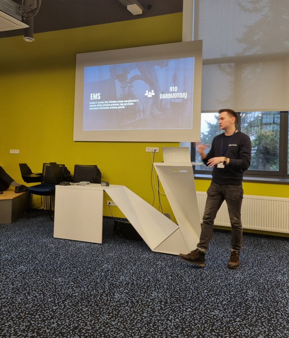 Mokiniai taip pat dalyvavo profesiniame veiklinime – lankėsi įmonėse ir susipažinto su įvairiomis karjeros galimybėmis. Viena iš jų buvo „Teltonika Networks“, kur IoT akademijos koordinatorius Gedas Kambaras pristatė įmonės veiklą, supažindino mokinius su Teltonikos grupės įmonėmis bei inžinerijos specialybių pozicijomis ir galimybėmis. Mokiniai sužinojo apie šiuolaikines technologijas ir karjeros perspektyvas šioje srityje.