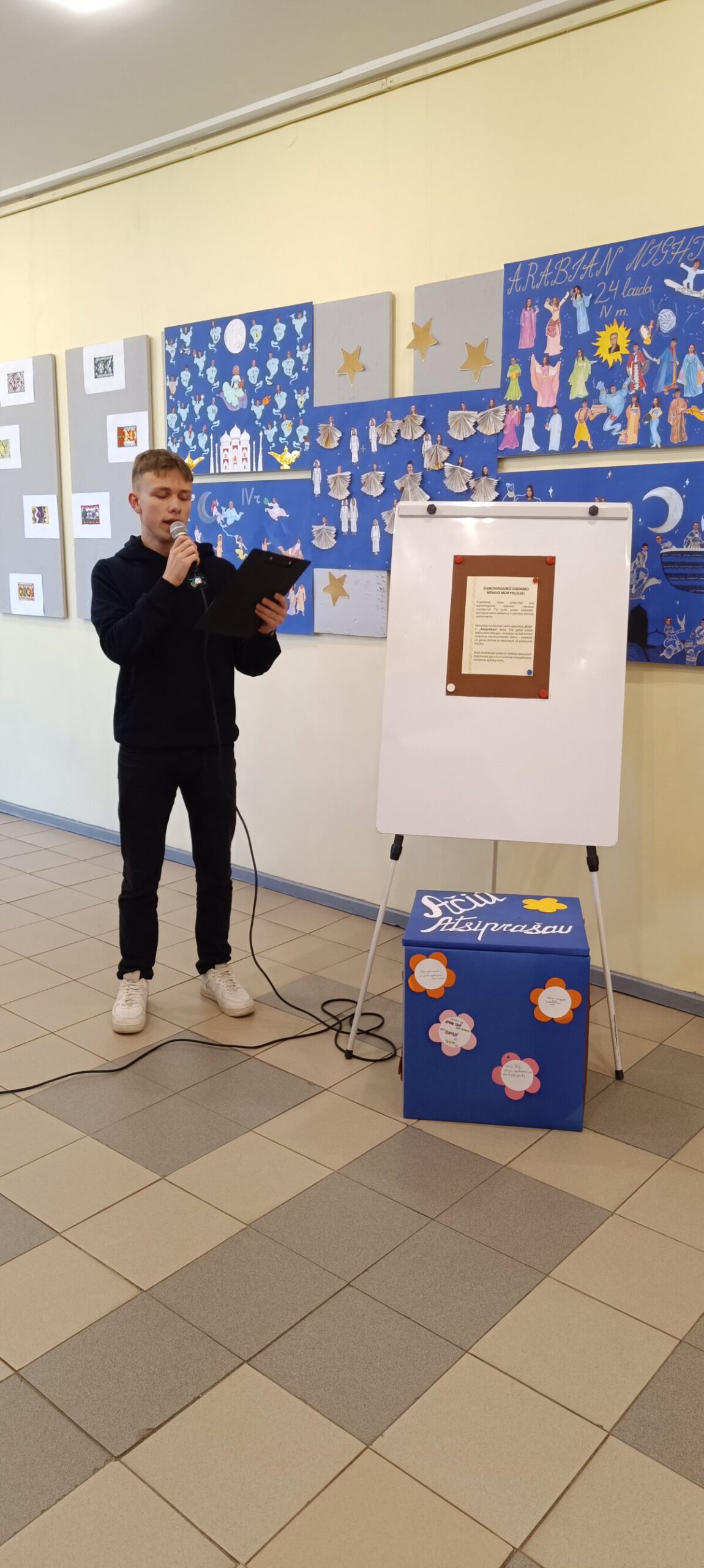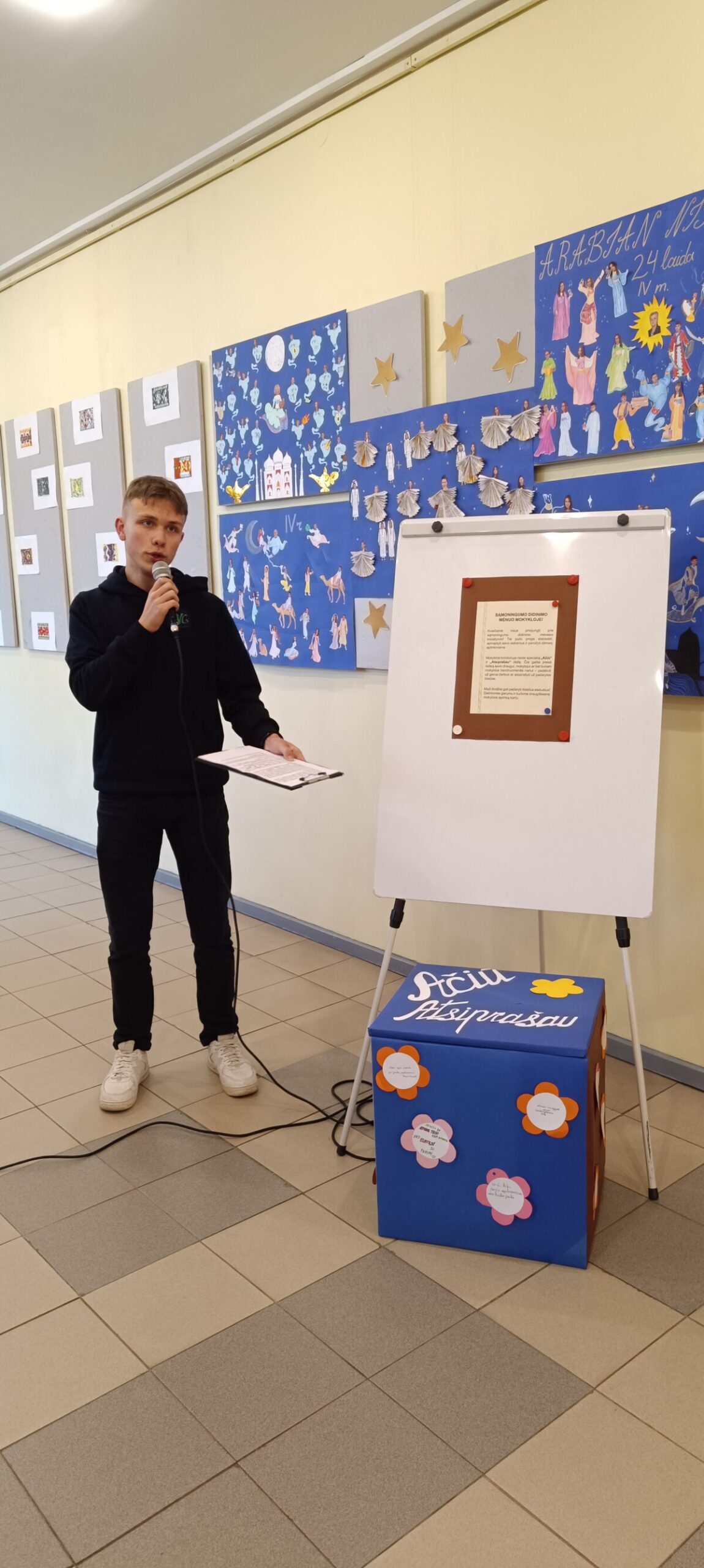 Penktadienio, kovo 7-osios, rytas prasidėjo nuo kvietimo prisijungti prie Sąmoningumo didinimo mėnesio veiklų mokykloje. Renginio vedėjas Jokūbas Balčius kalbėjo, jog sąmoningumas prasideda nuo mažų dalykų: gebėjimo įsiklausyti, suprasti, parodyti dėmesį kitiems. Mokinys pakvietė bendruomenę aktyviai dalyvauti įvairiose šį mėnesį vyksiančiose veiklose. Viena jų – iniciatyva „Gerumo paštas“. Mokyklos koridoriuje bus galima rasti dėžę laiškams. Bendruomenės nariai galės padėkoti vieni kitiems už pagalbą, draugystę ar įkvėpimą arba atsiprašyti už padarytas klaidas. Mėnesio pabaigoje laiškai bus išdalinti adresatams.