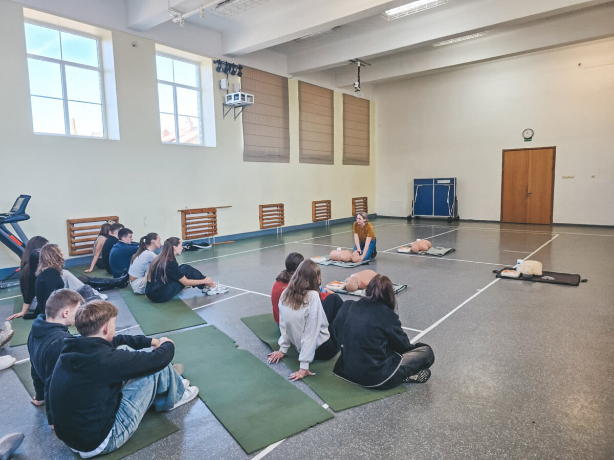 Pamokos metu mokiniai prisiminė, kaip greitai ir tinkamai įvertinti situaciją, įsitikinti, ar žmogus sąmoningas ir kvėpuoja, kaip iškviesti greitąją medicinos pagalbą, atlikti pradinį gaivinimą bei naudotis automatiniu išoriniu defibriliatoriumi.