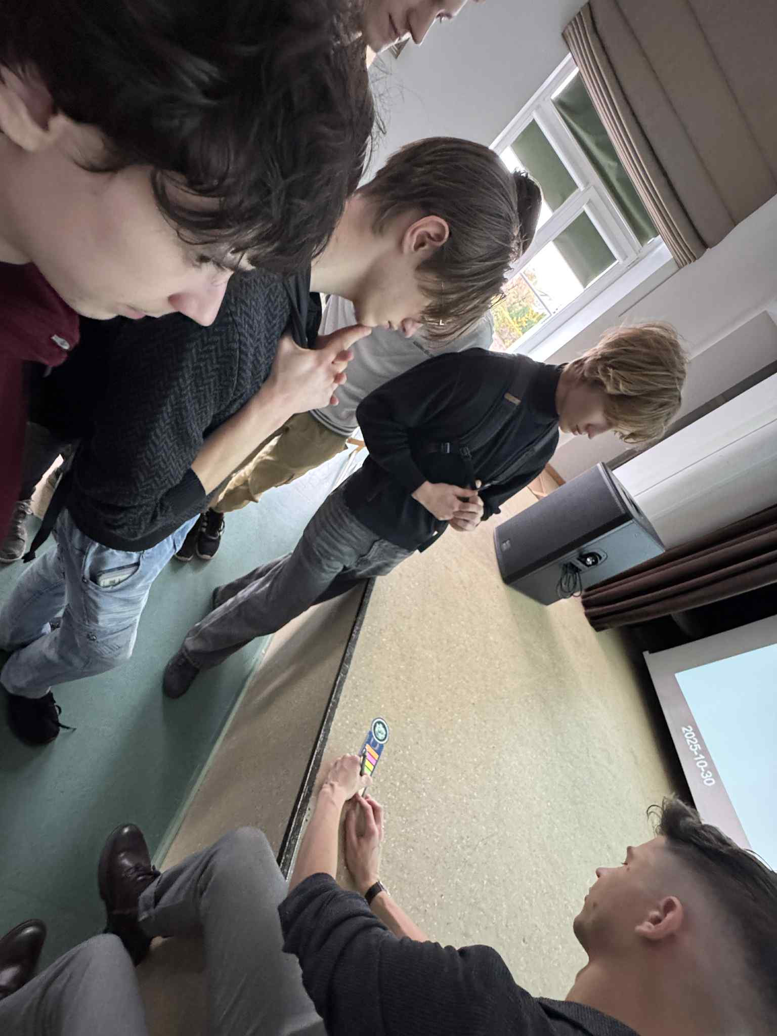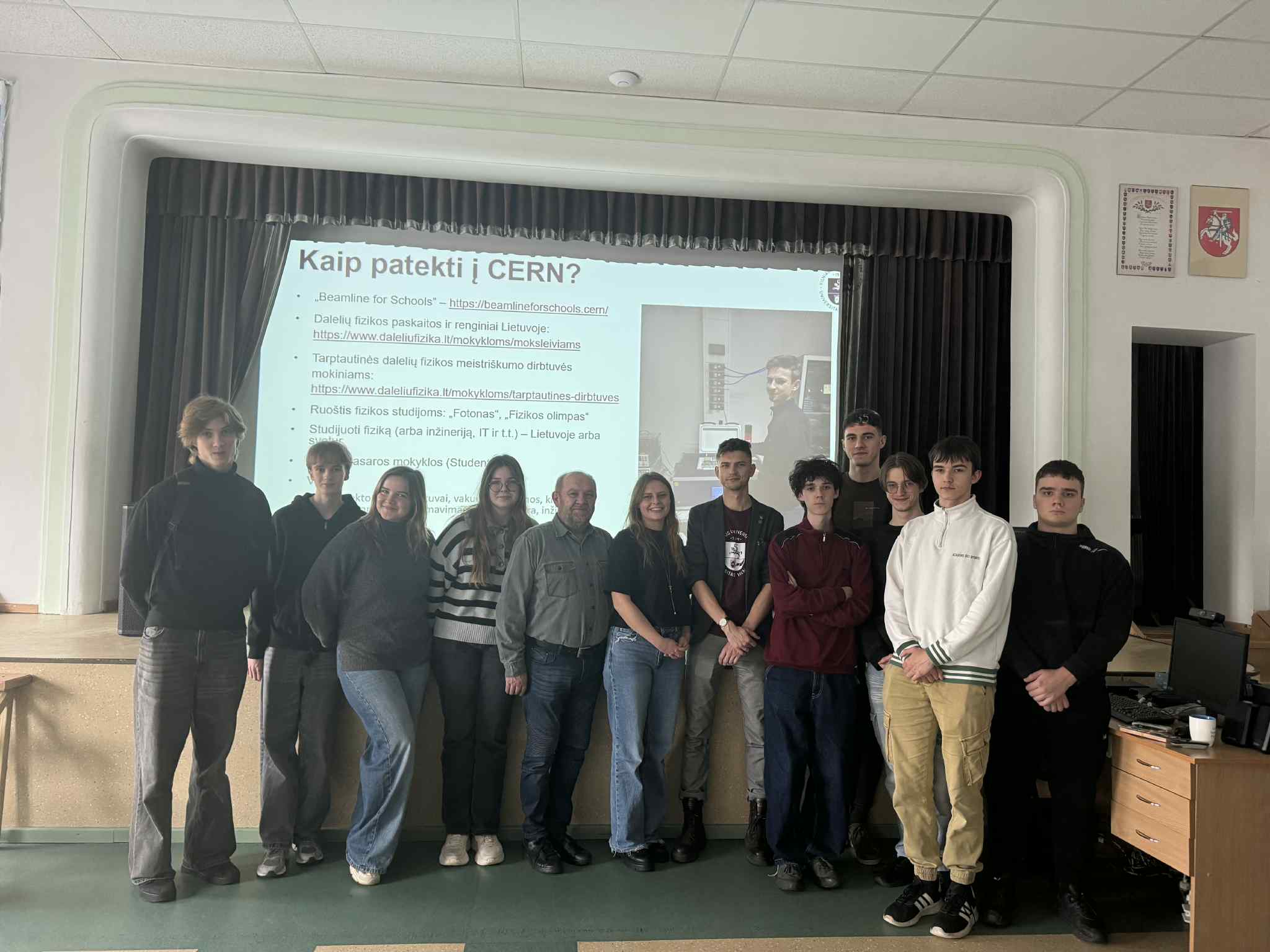 Po paskaitos diskusija dar ilgai nesibaigė – keletas susidomėjusių mokinių bendravo su Marijumi, uždavinėjo klausimus apie CERN laboratoriją, jo tyrimus ir studijas.