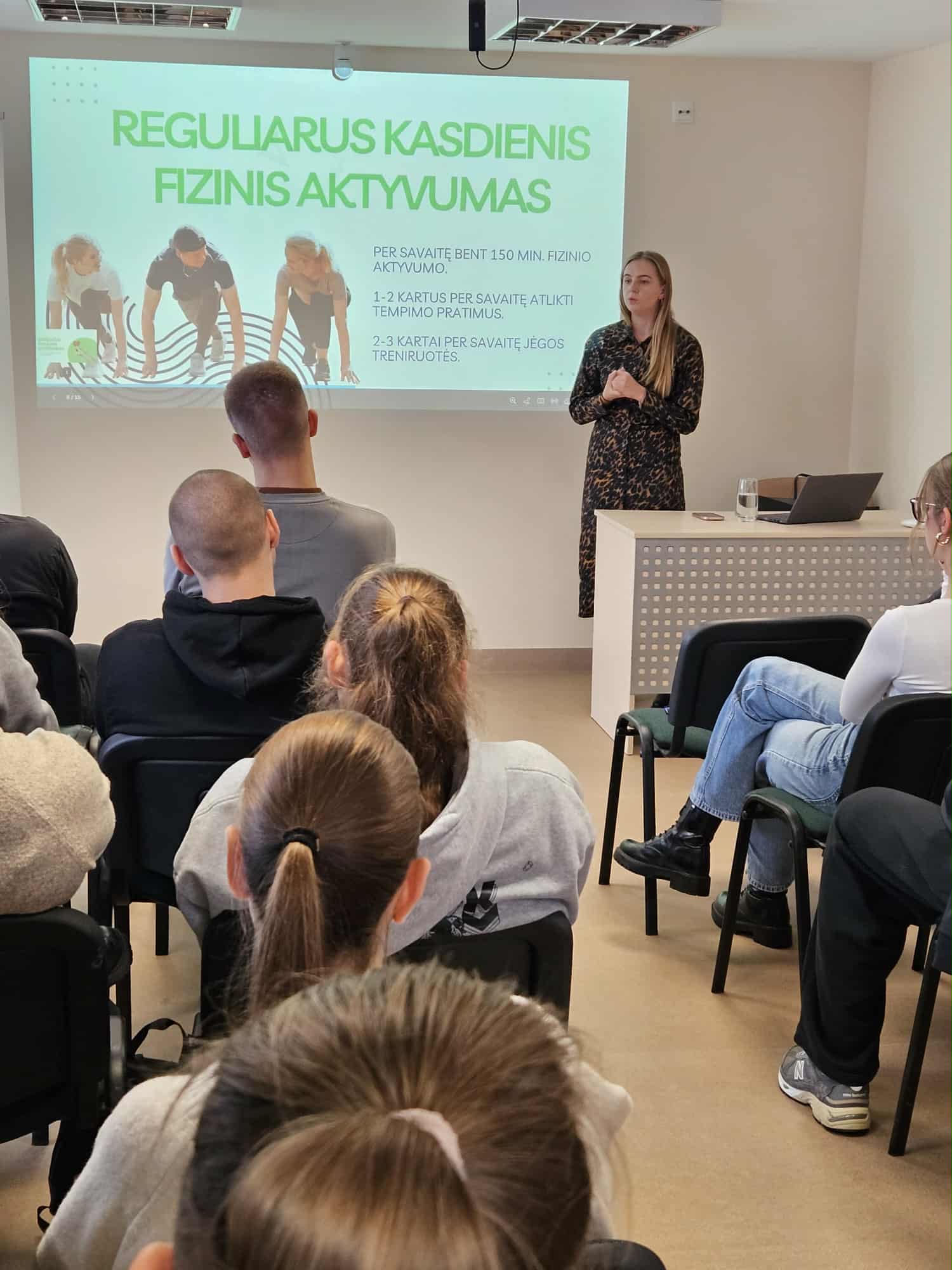 Sveikatai palanki gyvensena: gimnazistai klausėsi dietologės paskaitos
