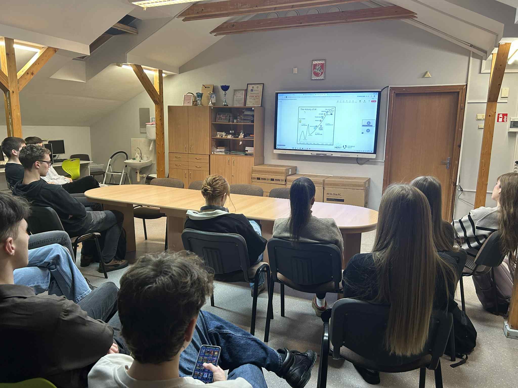 Gimnazistai su dideliu susidomėjimu klausėsi pasakojimų apie dirbtinio intelekto raidą, šiandienines jo taikymo sritis bei ateities perspektyvas. Lektorius ne tik pateikė daug vertingų įžvalgų, bet ir skatino mokinius mąstyti kritiškai, kelti klausimus bei atpažinti dirbtinio intelekto (DI) galimybes kasdienybėje.