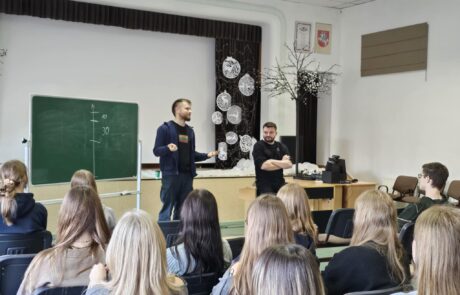 Gruodžio 12 d. I a, II s ir III f klasių mokiniams vyko pamoka „Universitete teks mokytis kitaip nei mokykloje. Kaip kitaip? Kokie svarbiausi skirtumai? Ko nepražiopsoti?“ Ją vedė Vilniaus universiteto Matematikos ir informatikos fakulteto dėstytojai Vytautas Ašeris ir Ignas Kukenys.