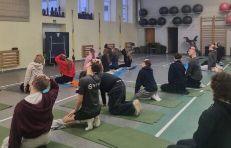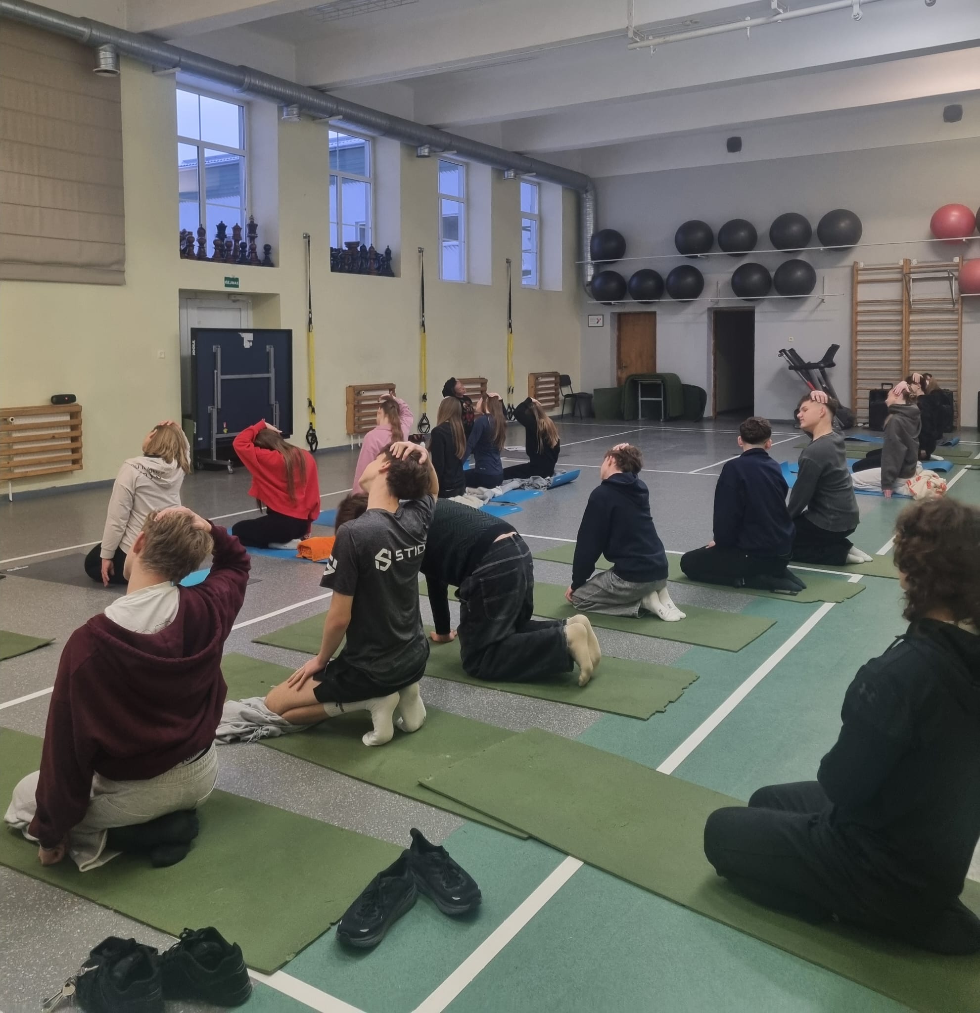 Sausio 22 dieną I Tb klasės mokiniams vyko netradicinė Sveikatos ir fizinio ugdymo pamoka – jogos treniruotė, kurią vedė profesionali jogos mokytoja Rasa Tachtamiševienė. Užsiėmimo metu mokiniai susipažino su jogos pagrindais, mokėsi kvėpavimo pratimų, tempimo bei atsipalaidavimo technikų, padedančių gerinti fizinę savijautą, susikaupimą ir emocinę pusiausvyrą.