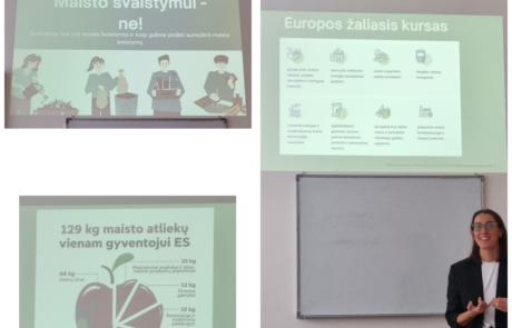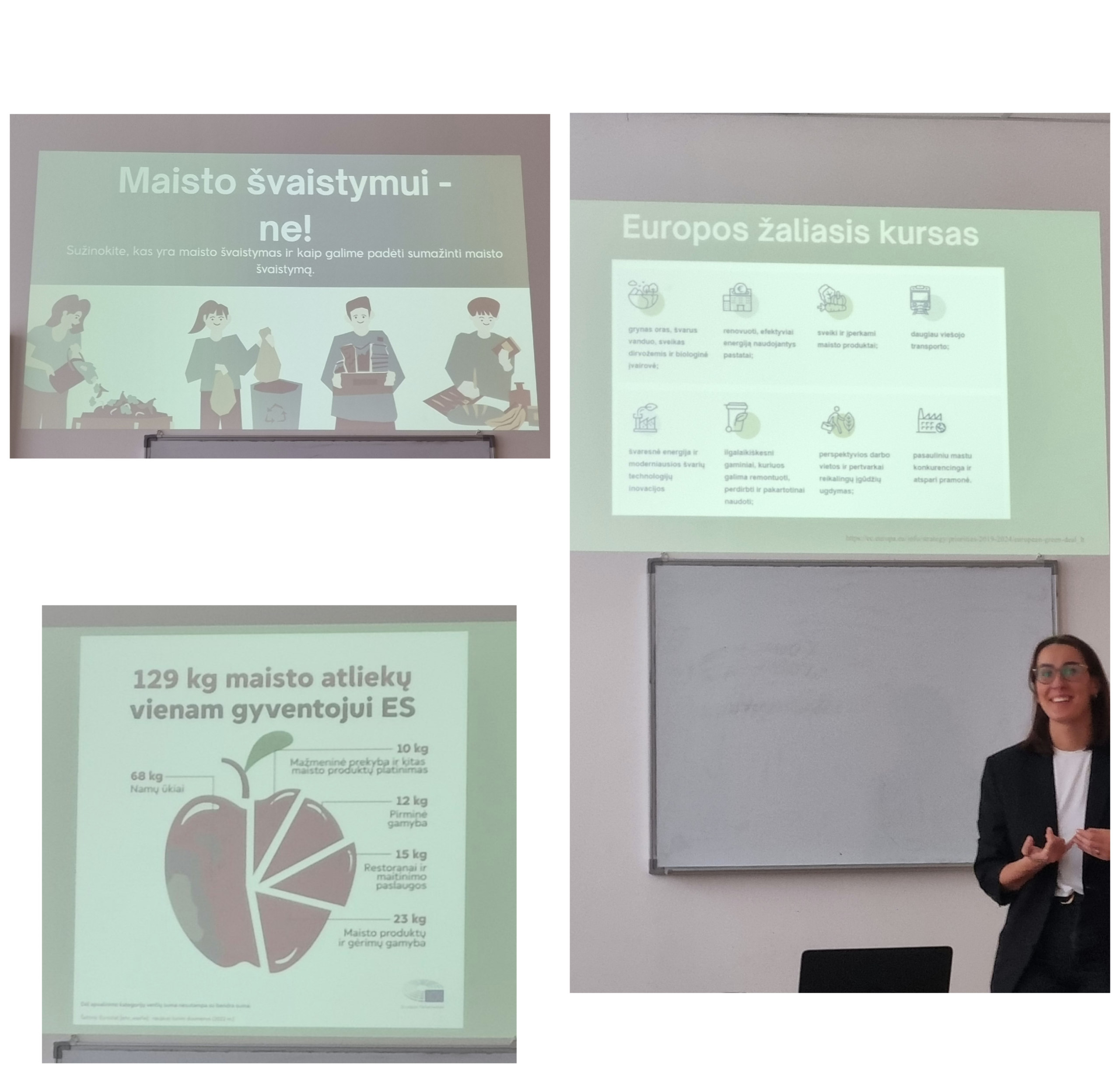 Antroje paskaitoje „Maisto švaistymui – NE!“ gimnazistai klausėsi doktorantės Gretos Grikštaitės–Prapiestės paskaitos apie maisto švaistymo problemą, kurioje akcentuota, kad daugiausia maisto iššvaistoma namų ūkiuose, todėl kiekvienas iš mūsų gali prisidėti prie šios problemos sprendimo. Mokiniai diskutavo, kodėl maisto švaistymas tampa rimta problema, ieškojo sprendimų, kaip ją mažinti. Vienas iš aptartų būdų – atsakingas vartojimas ir atliekų rūšiavimas. Įgytas žinias jie įtvirtino dalyvaudami „Kahoot“ viktorinoje.