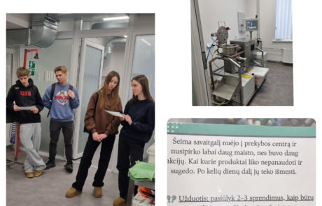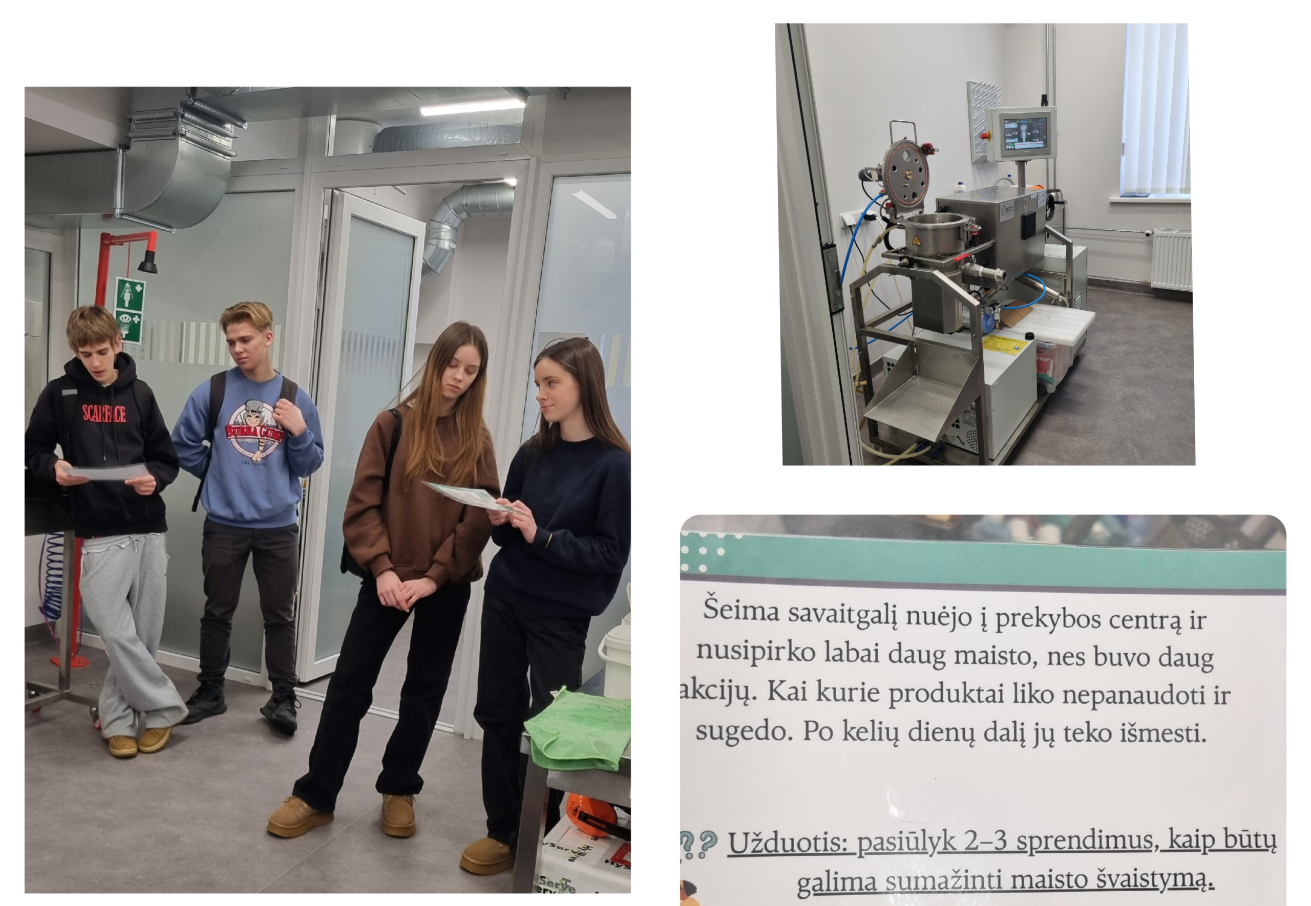 Gimnazistai taip pat apsilankė maisto laboratorijoje, kur susipažino su sveikesnių, natūralesnių ir aplinkai draugiškų maisto produktų kūrimu. Jie apžiūrėjo modernią įrangą ir atliko praktines užduotis, siūlydami idėjas, kaip būtų galima sumažinti maisto švaistymą ir gyventi tvariai.