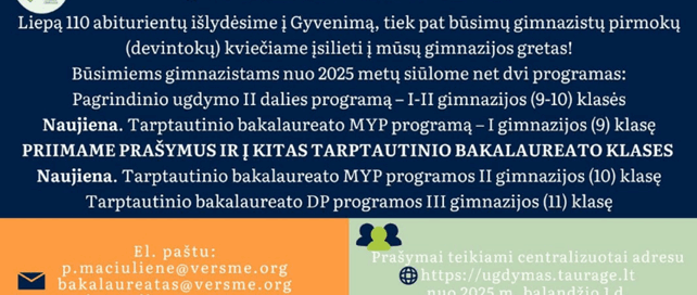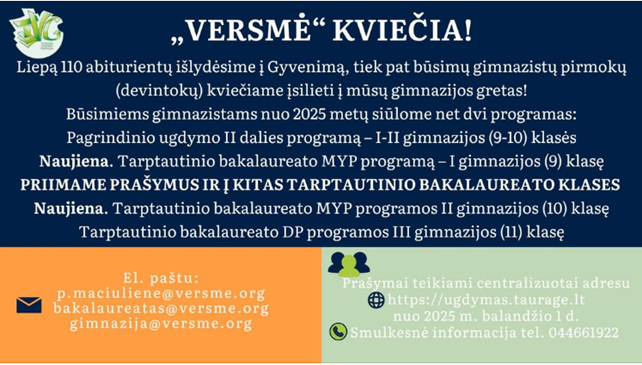 Kviečiame mokytis „Versmės“ gimnazijoje!